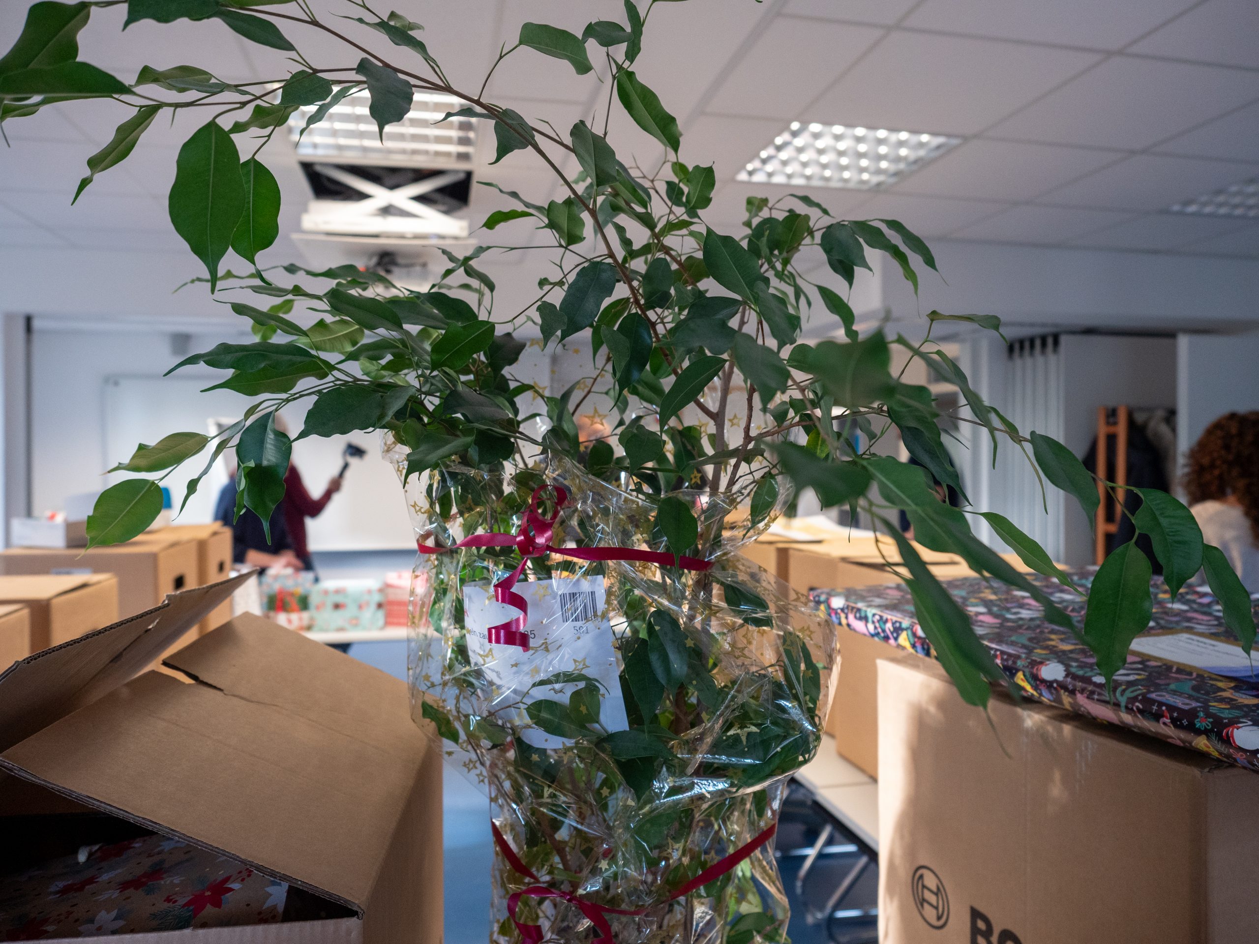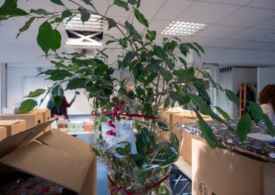 Am 10.12.2025 fand zum siebten Mal die Geschenkübergabe der Aktion „Kinderlächeln zaubern“ der Mitarbeitenden der Firma Bosch Schwieberdingen statt. Betriebsrat Steffen Freund und sechs weitere Bosch-Mitarbeitende brachten im Namen des Standorts Schwieberdingen insgesamt 137 Geschenke in allen Formen, Farben und Größen für die Kinder- und Jugendhilfe der Karlshöhe mit. In diesem Jahr standen erstmals auch Zimmerpflanzen auf den Wunschlisten der Jugendlichen. Unter den Geschenken befand sich daher auch ein „Benjamin“.
