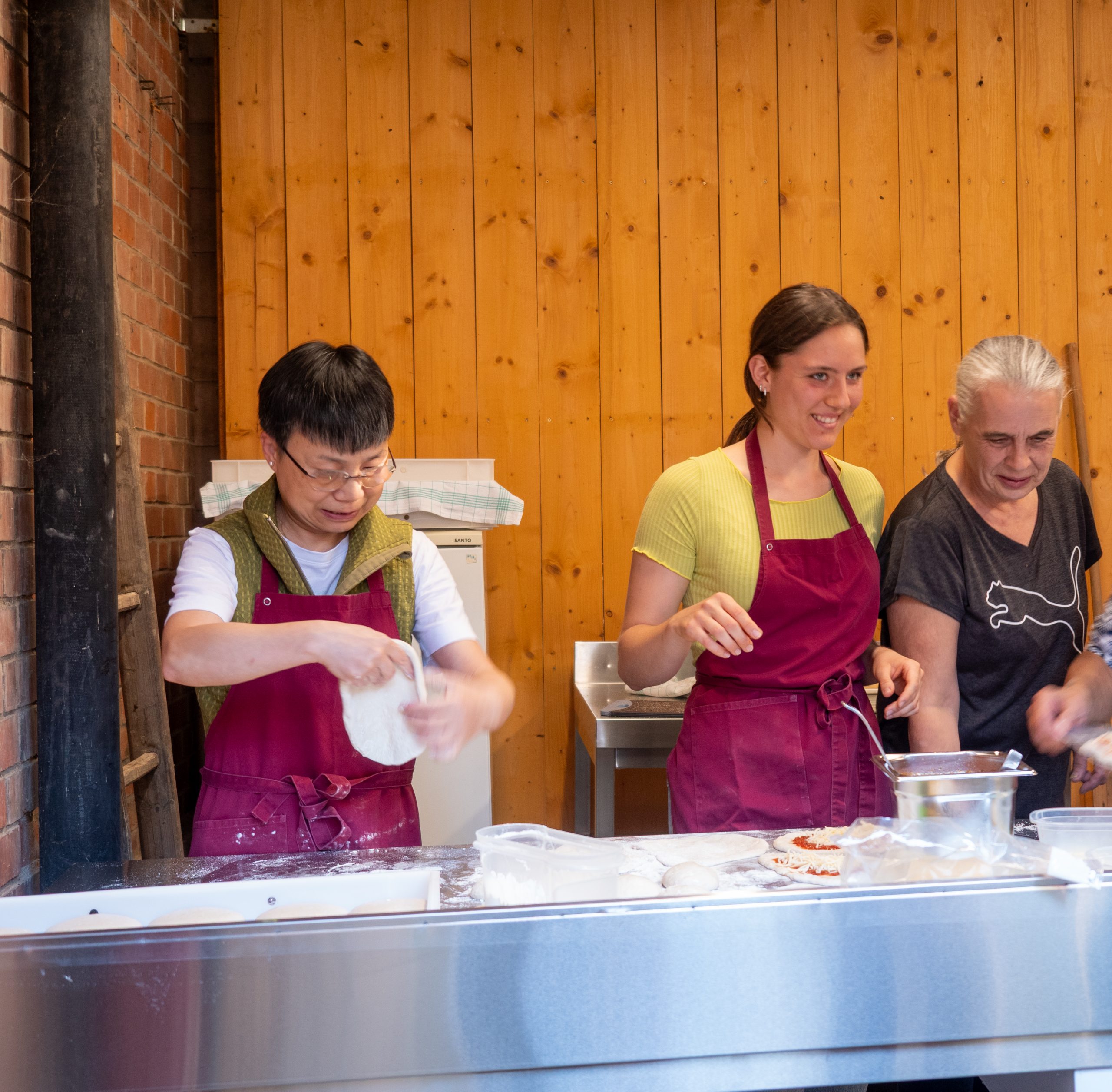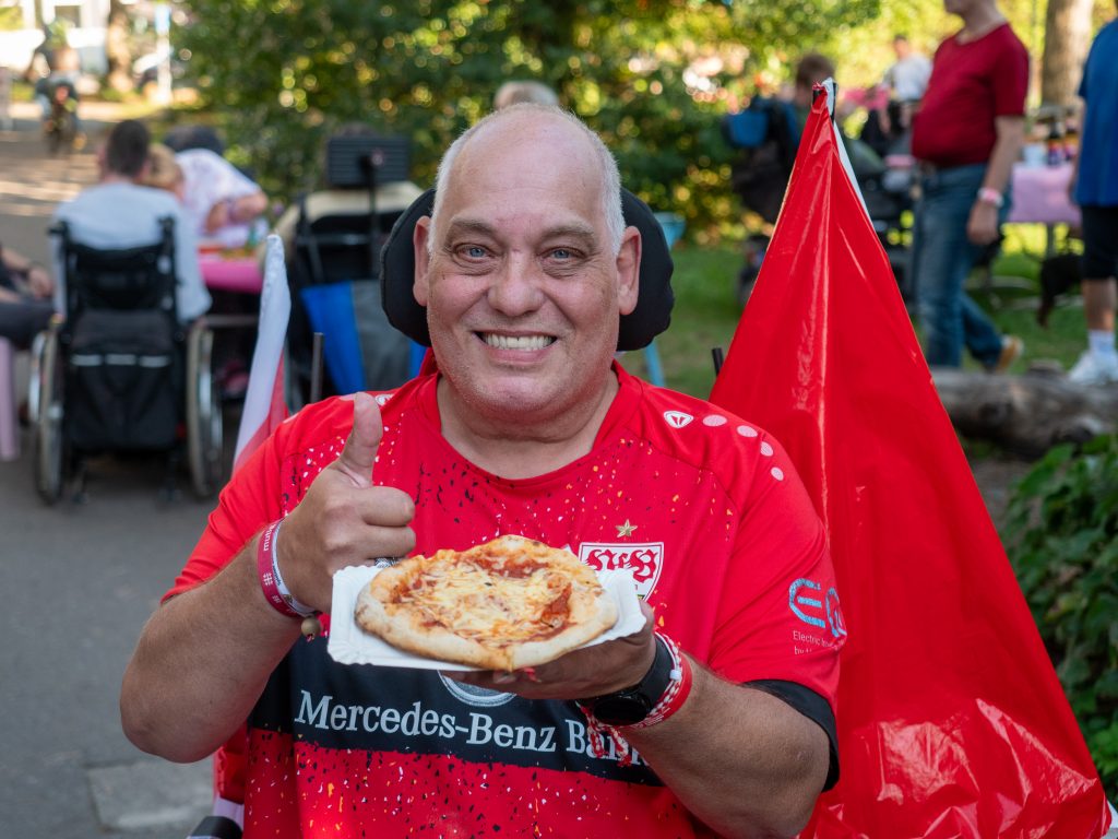 Für eine kleine Spende gab es ofenfrische Pizza aus dem Karlshöher Backhäusle, liebevoll zubereitet von der Karlshöher Hauswirtschaft. Ergänzt wurde das Angebot durch verschiedene Kuchen und einen Nudelsalat. Außerdem waren drei Mitarbeitende der Ludwigsburger LBBW vor Ort und haben tatkräftig unterstützt.
