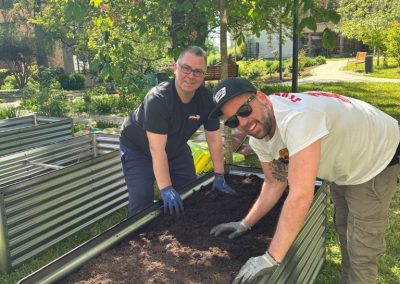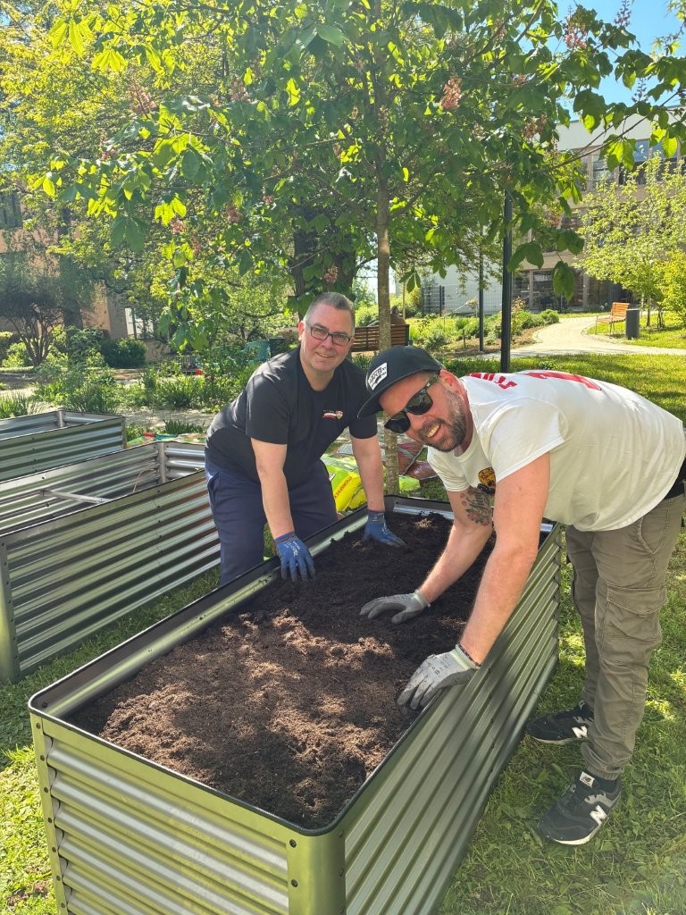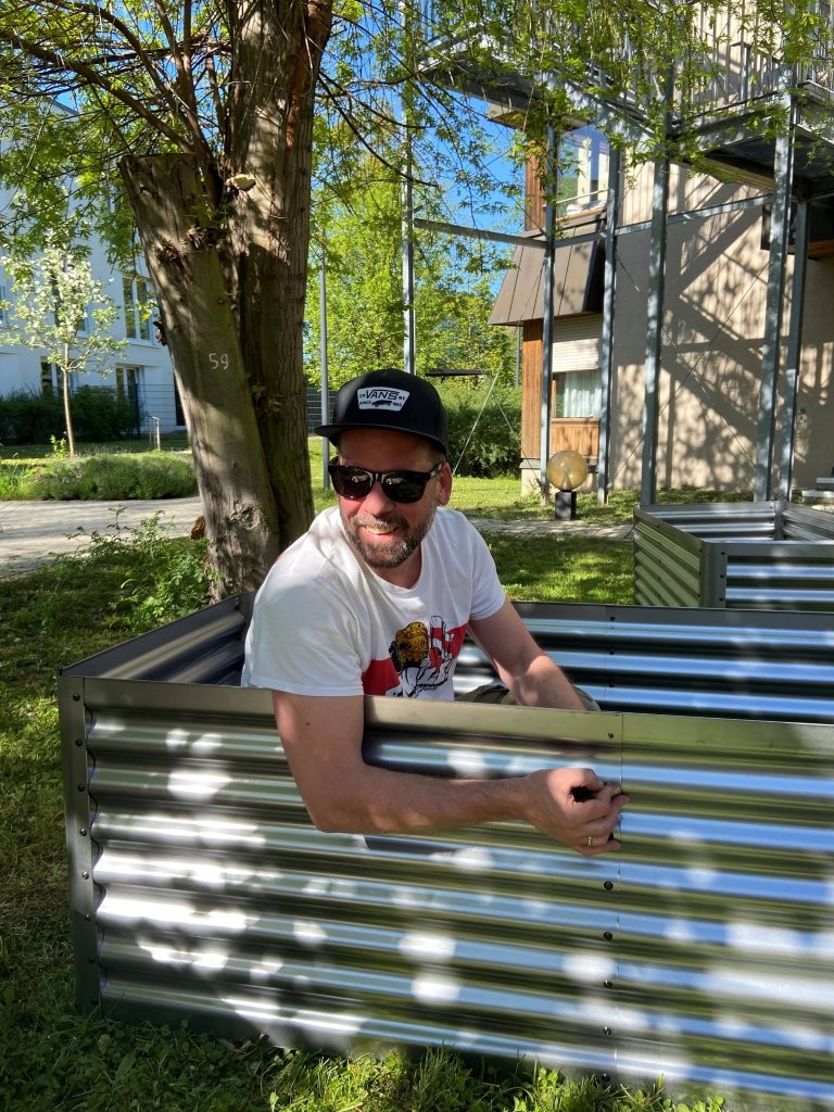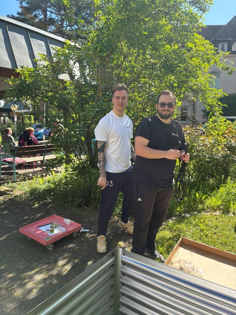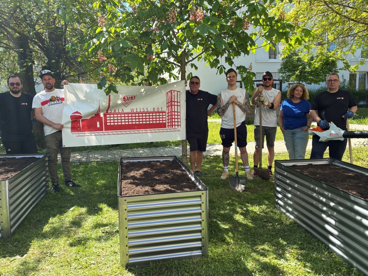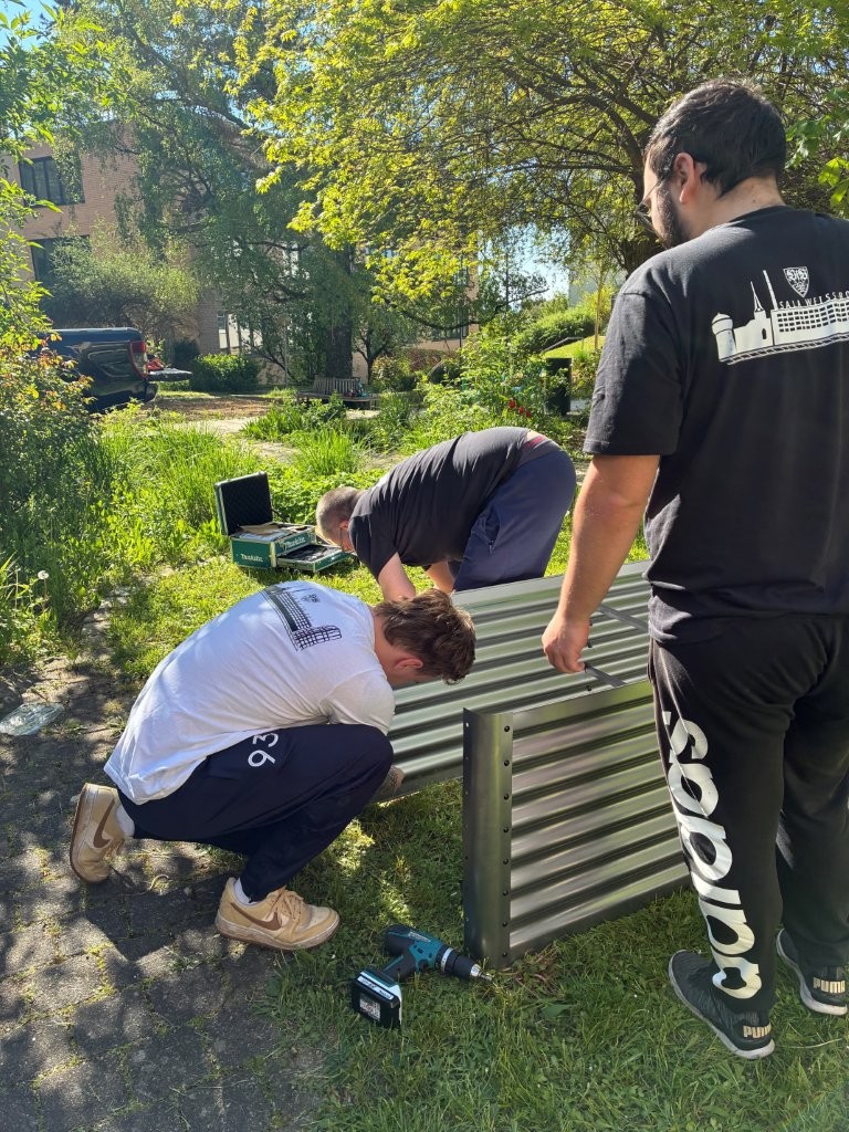 Am 29. April fiel der Startschuss für das Quartiersprojekt „Matsch & Klatsch“ auf der Karlshöhe. Nachdem bereits am Samstag zuvor engagierte Mitglieder des VfB-Fanclubs Sala Kornwestheim mehrere Hochbeete aufgebaut hatten, konnte das Gardening-Projekt nun offiziell beginnen.