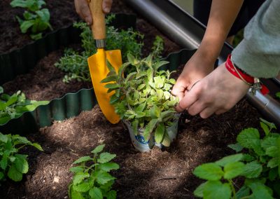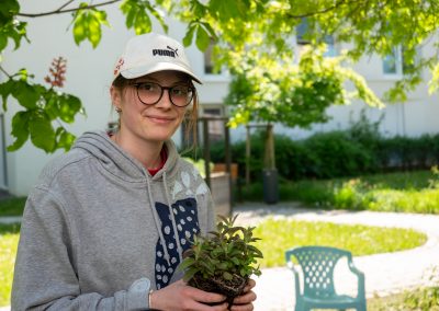 Geleitet wird das Projekt von Rahel Dengler – Studentin der Evangelischen Hochschule Ludwigsburg. Bepflanzt wurden die Hochbeete unter anderem mit Zitronenmelisse und Minze.